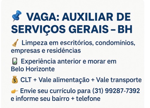- Capacidade de trabalhar em equipe e manter a atenção aos detalhes;