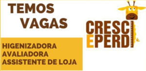 Oportunidades de Carreira: Cresce Perde – Contagem/MG O Cresce Perde, referência em organização e excelência no atendimento, está expandindo suas equipes. Estamos em busca de profissionais comprometidos, dinâmicos e que desejam atuar em um ambiente colaborativo nas regiões do Eldorado e do Cabral. Vagas Disponíveis 1. Higienizadora 2. Avaliadora 3. Assistente de Loja Perfil e … Continue lendo Higienizadora – Avaliadora – Assistente de Loja