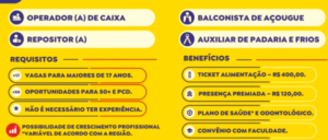 Oportunidades de Emprego: Supermercados BH (Betim e Região) O Supermercados BH reforça seu compromisso com a diversidade e inclusão, oferecendo mais de 50 vagas destinadas ao público 50+ e Pessoas com Deficiência (PCD). Buscamos profissionais proativos e que prezam pelo bom atendimento ao cliente. Cargos Disponíveis Requisitos e Perfil Desejado Benefícios Oferecidos Informações do Processo … Continue lendo Processo Seletivo Supermercados BH